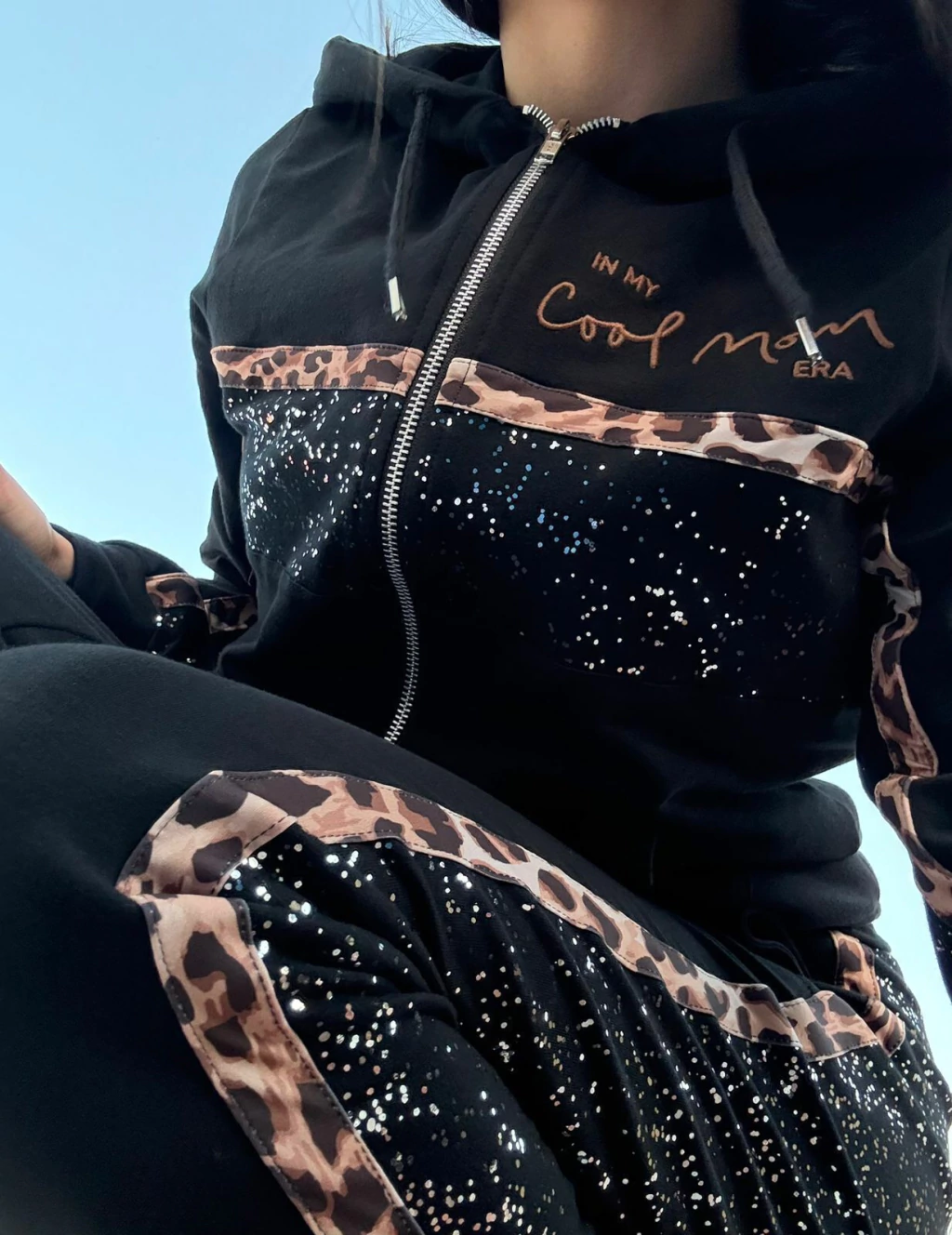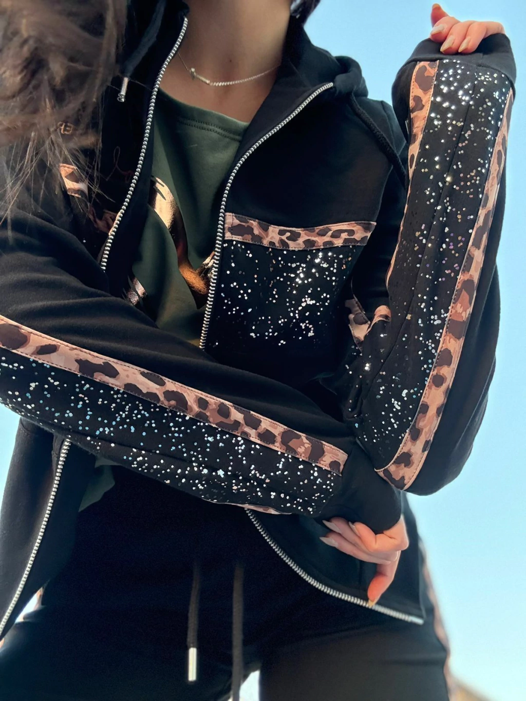 ♡ Esta campera finita en color negro destaca por su moderno diseño con detalles en foil plata que aportan un toque sofisticado y único a tu outfit.