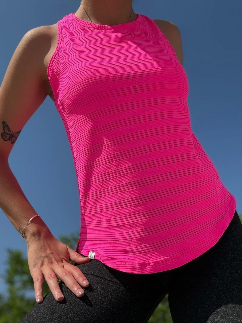 ♡Descubrí la musculosa caladita deportiva rosa pink, una prenda ideal para quienes buscan combinar estilo y comodidad en sus actividades diarias o entrenamientos. Su diseño calado la hace fresca y liviana, perfecta para los días de mayor calor o para sumar un toque moderno a tu look deportivo.